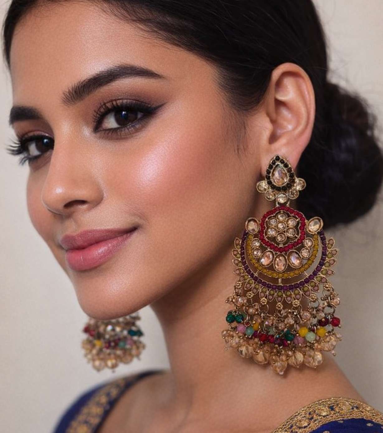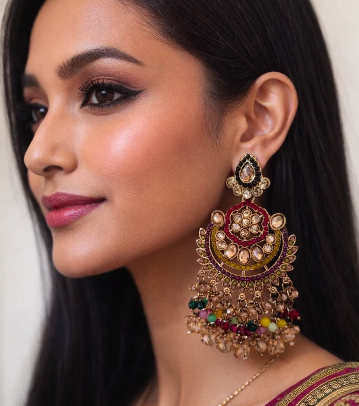 Designed to make a statement, these earrings are perfect for weddings, festive celebrations, and traditional occasions. Pair them with sarees, lehengas, or anarkalis for a regal, timeless appeal.
