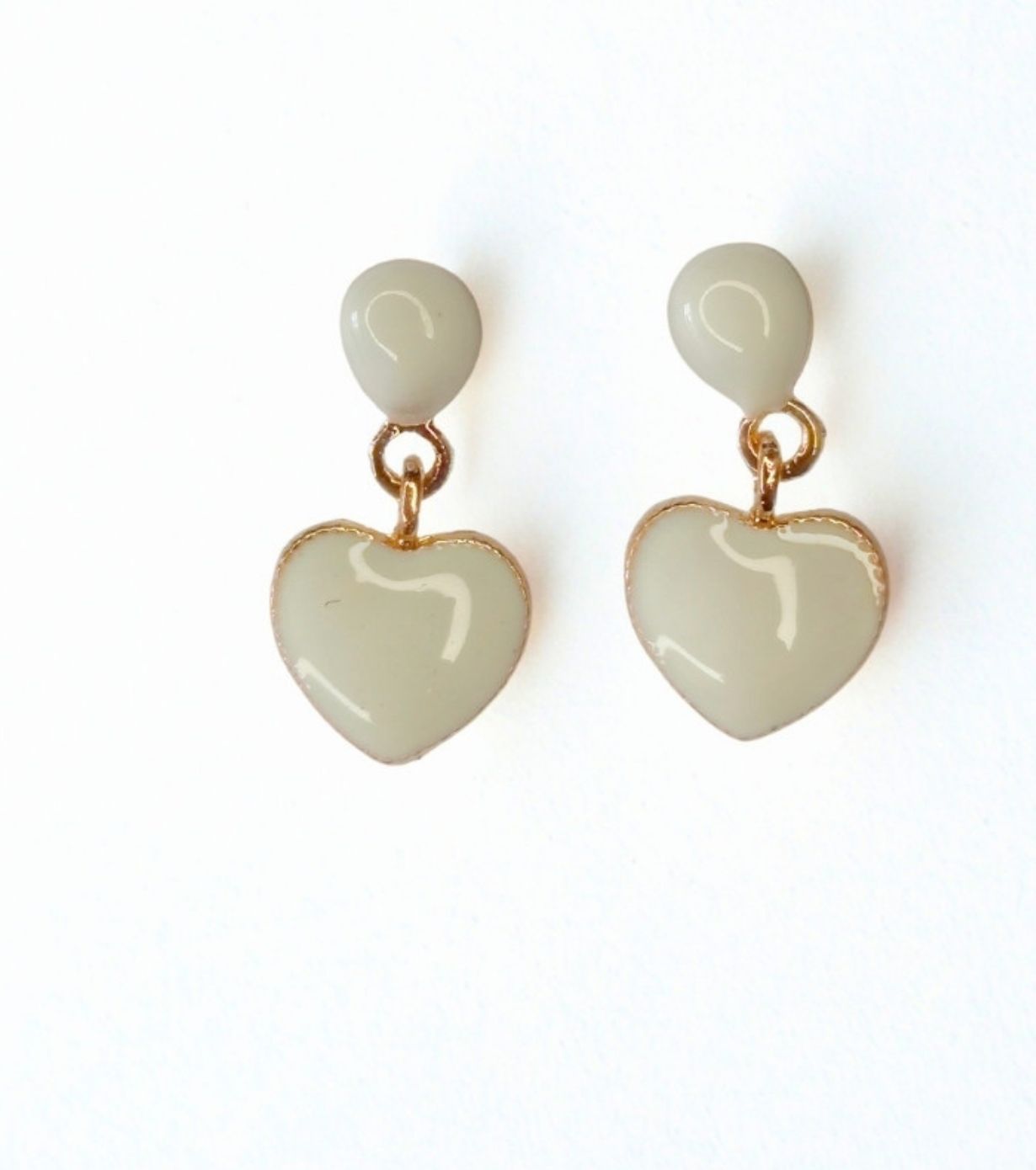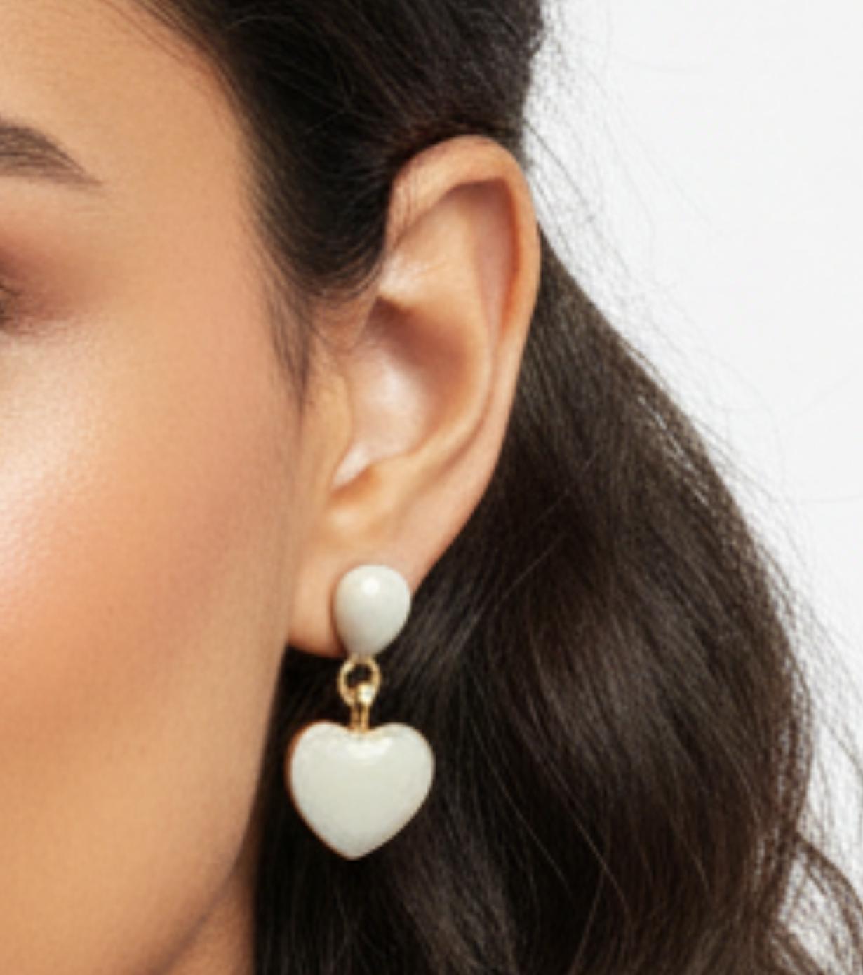 Cream Heart Drop Stud Earrings for Women – Minimal Enamel Jewellery