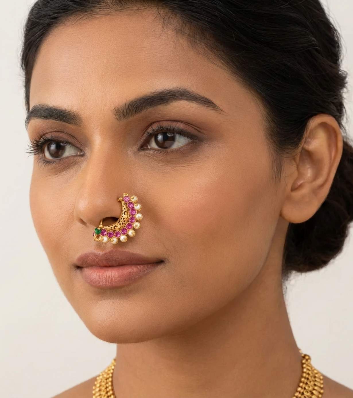 Traditional Kundan-style Nath (nose ring)