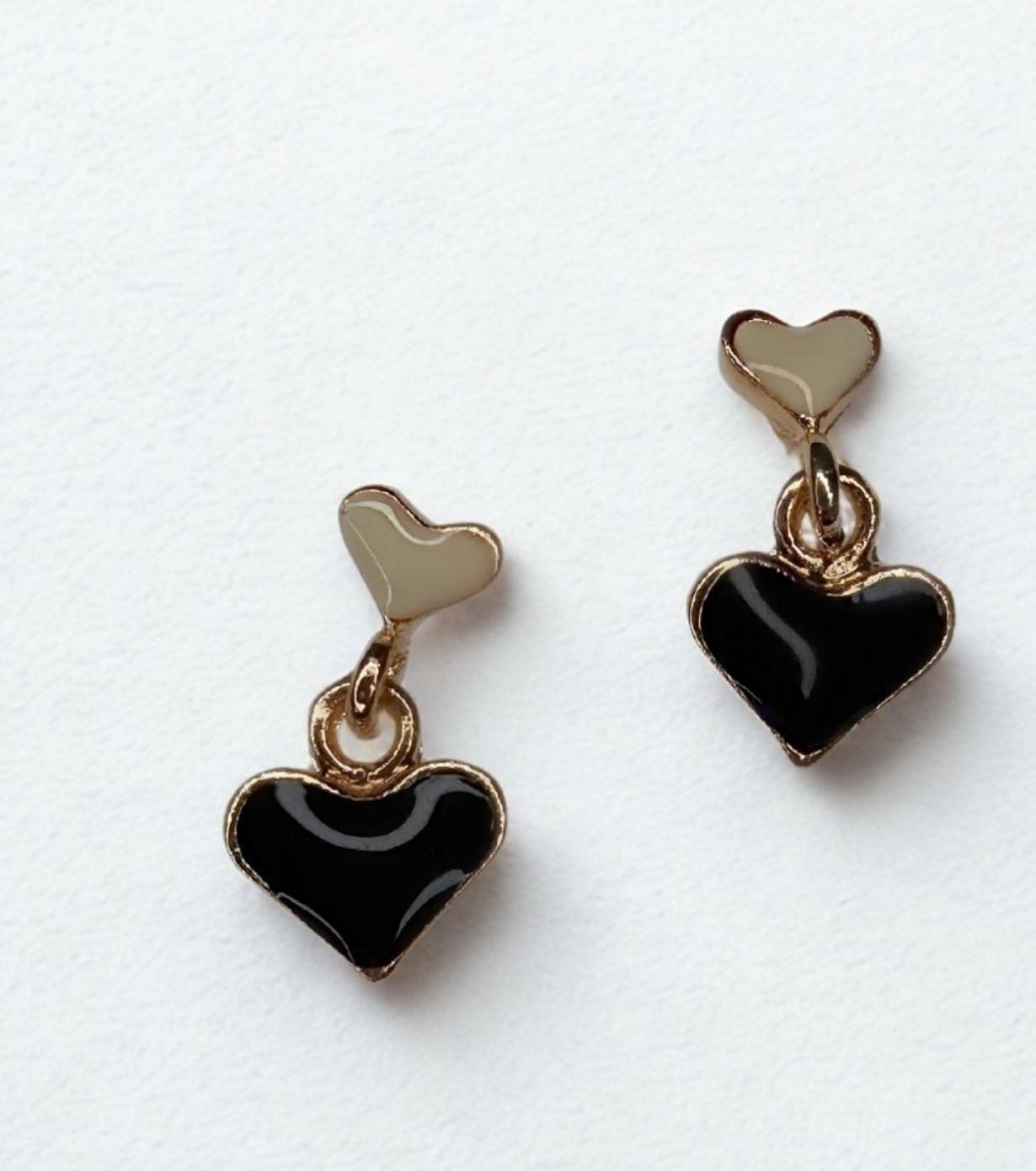Dual heart-shaped drop stud earrings