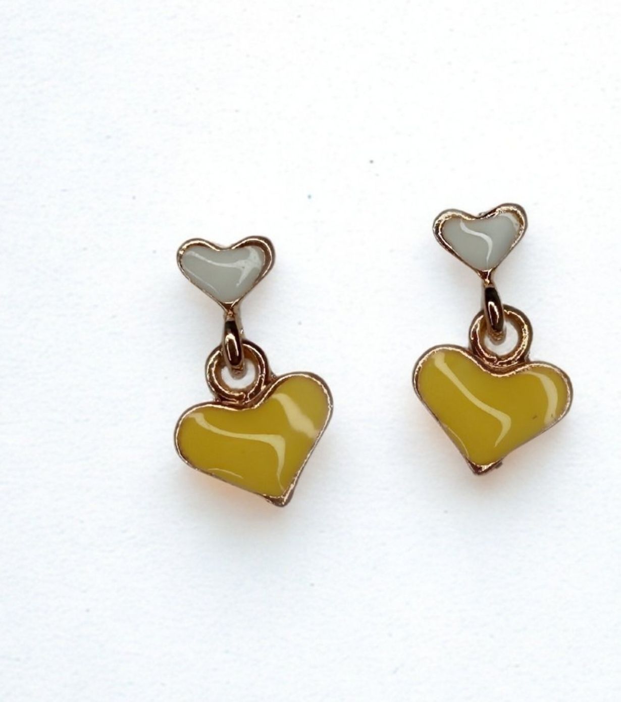 Brighten your look with these Gold Plated Heart Shape Stud Earrings Yellow Off White, featuring a charming yellow and off-white enamel combination. The glossy dual-heart design adds a playful yet elegant touch, making these earrings perfect for daily wear, casual outings, and western styles.