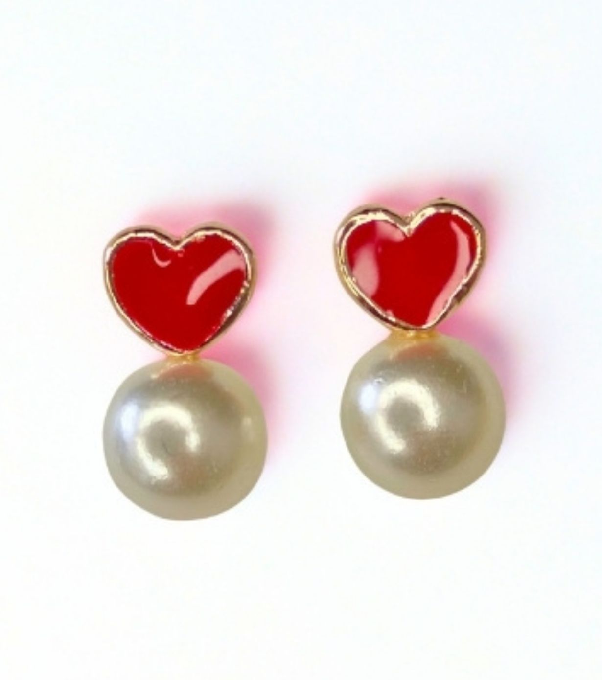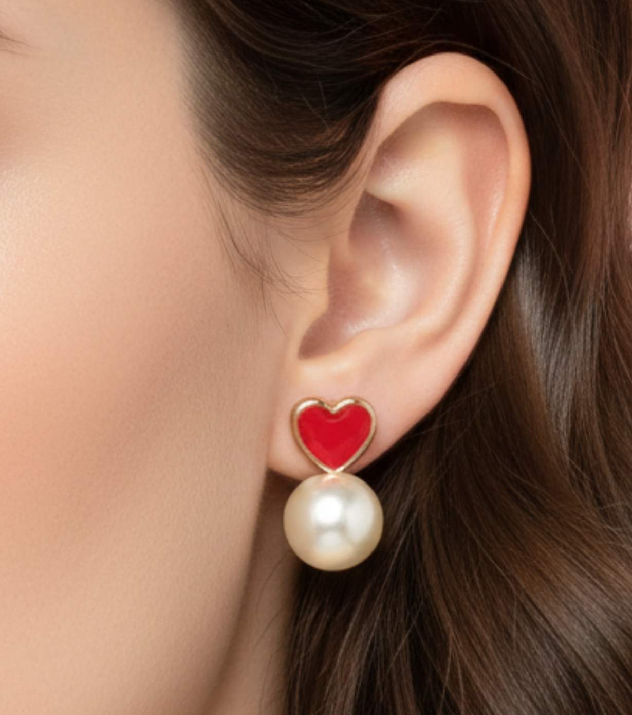 Add a touch of romance and elegance to your jewellery collection with these Red Heart Pearl Stud Earrings for Women Elegant Enamel Jewellery. Designed with a vibrant red enamel heart and complemented by a timeless pearl drop, these earrings strike the perfect balance between bold charm and classic beauty.