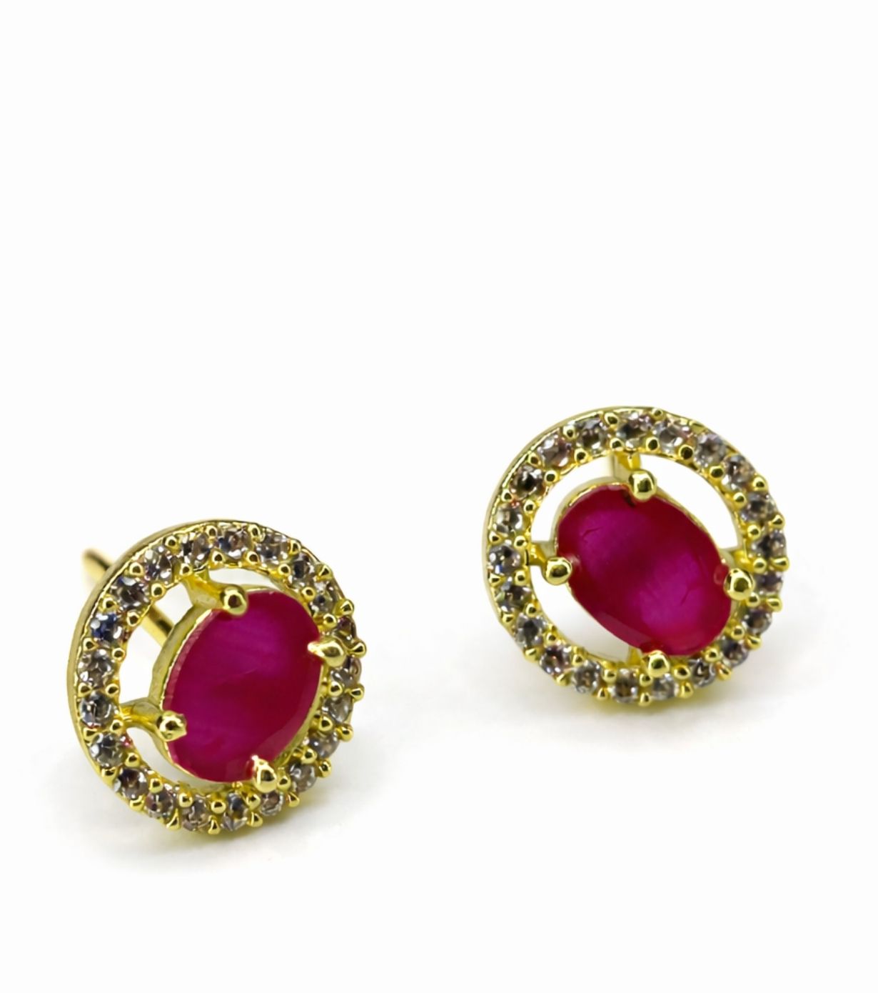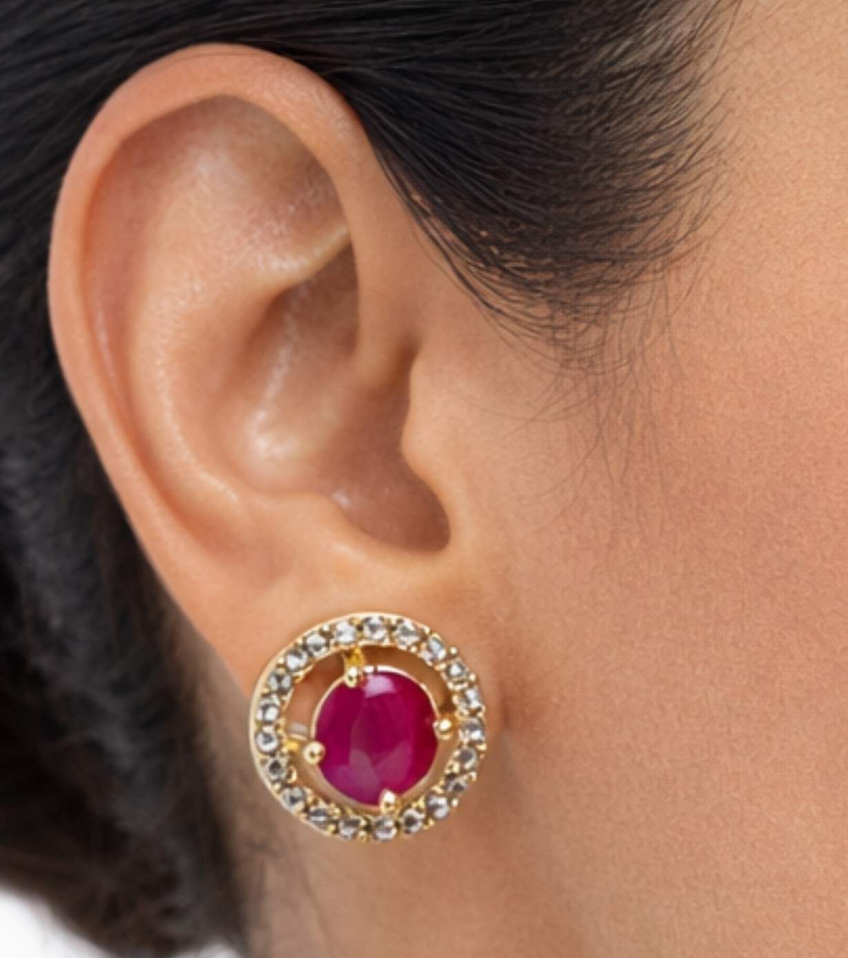 Add timeless elegance to your jewellery collection with these Red Stone Stud Earrings with Crystal Border | Gold Finish Earrings for Women. Featuring a rich oval red stone at the centre, surrounded by sparkling crystal accents and finished in a polished gold tone, these earrings offer a classic yet graceful look. Designed to be lightweight and comfortable, they are perfect for daily wear, festive occasions, weddings, and traditional outfits. A versatile accessory that beautifully complements ethnic, fusion, and festive styles.